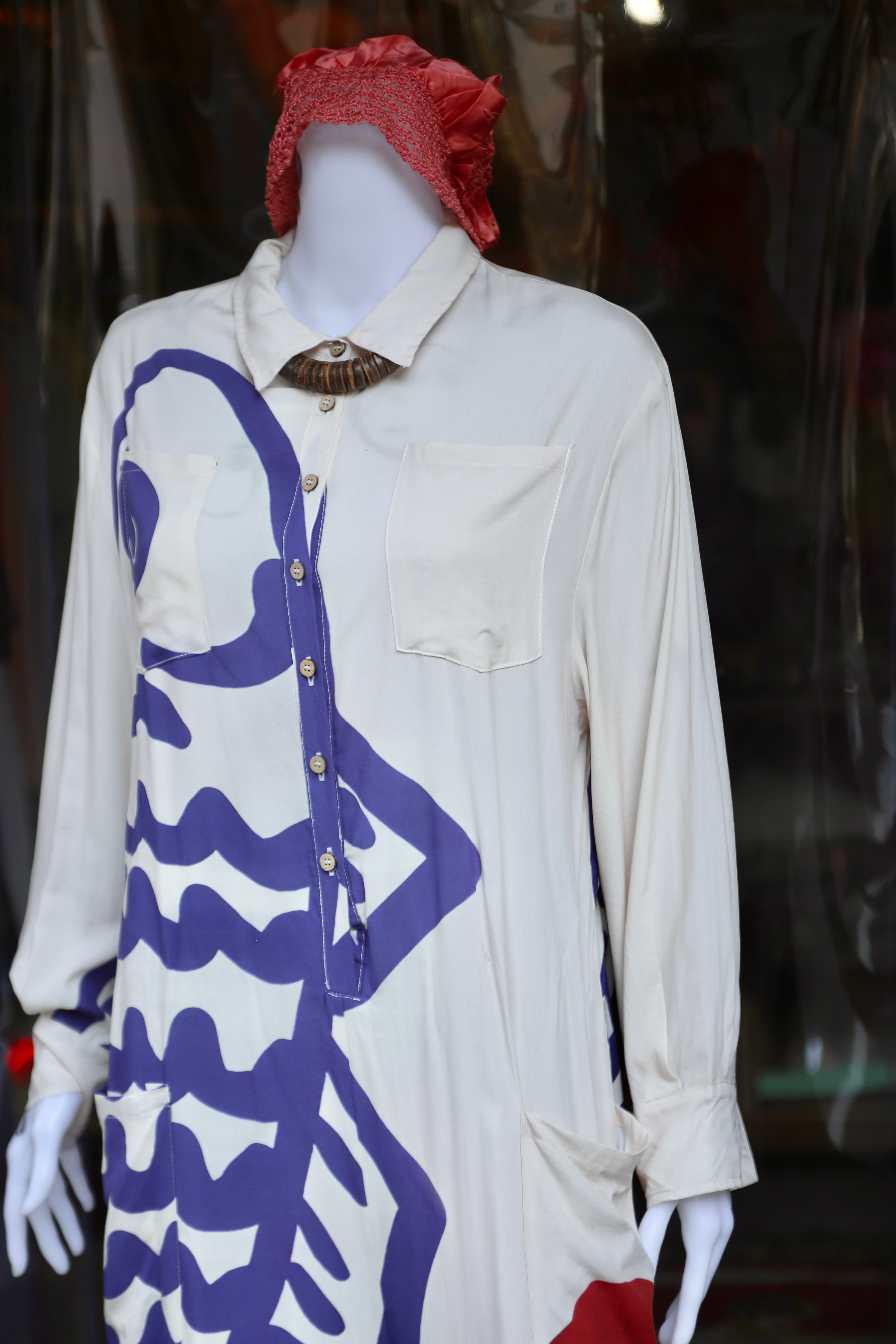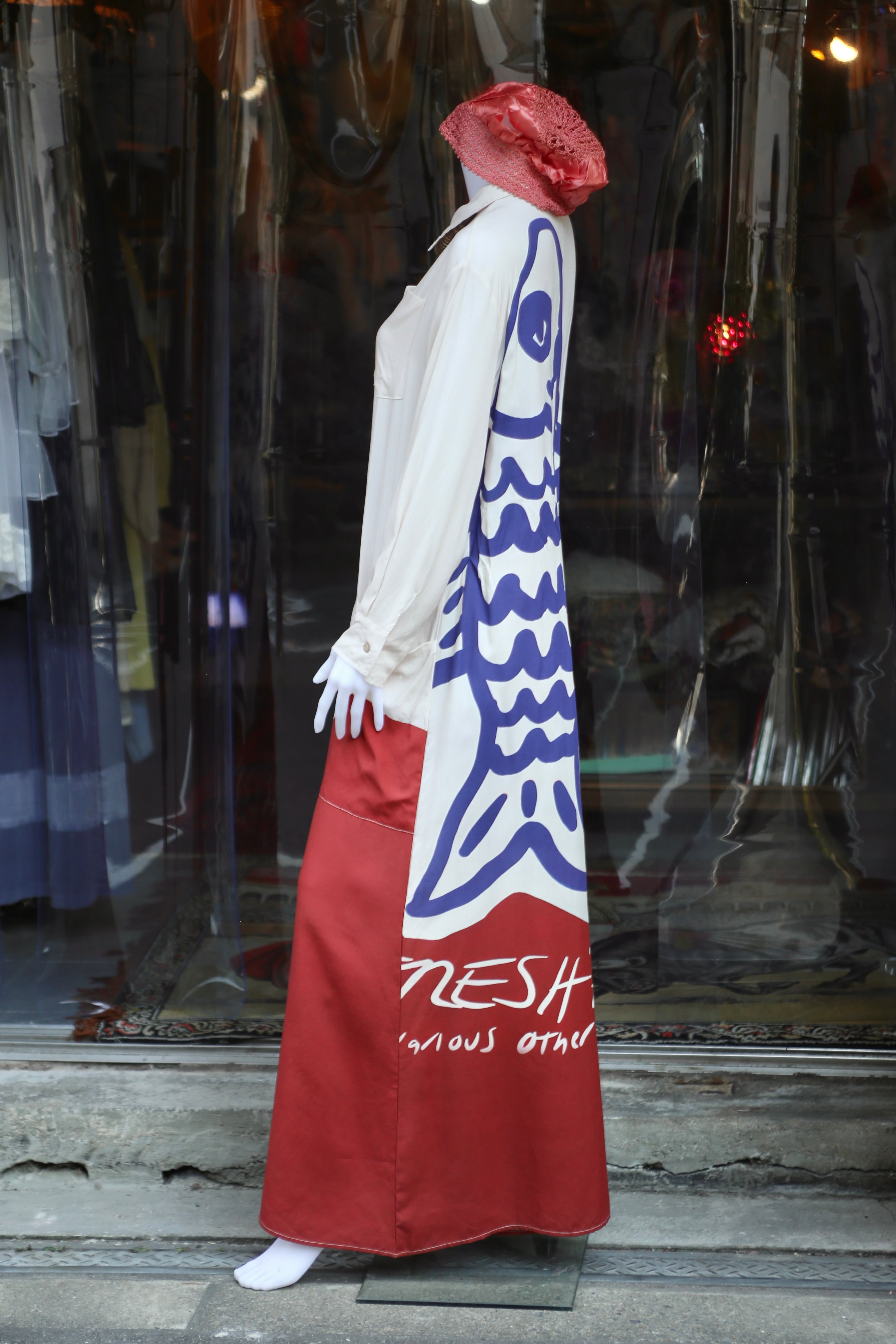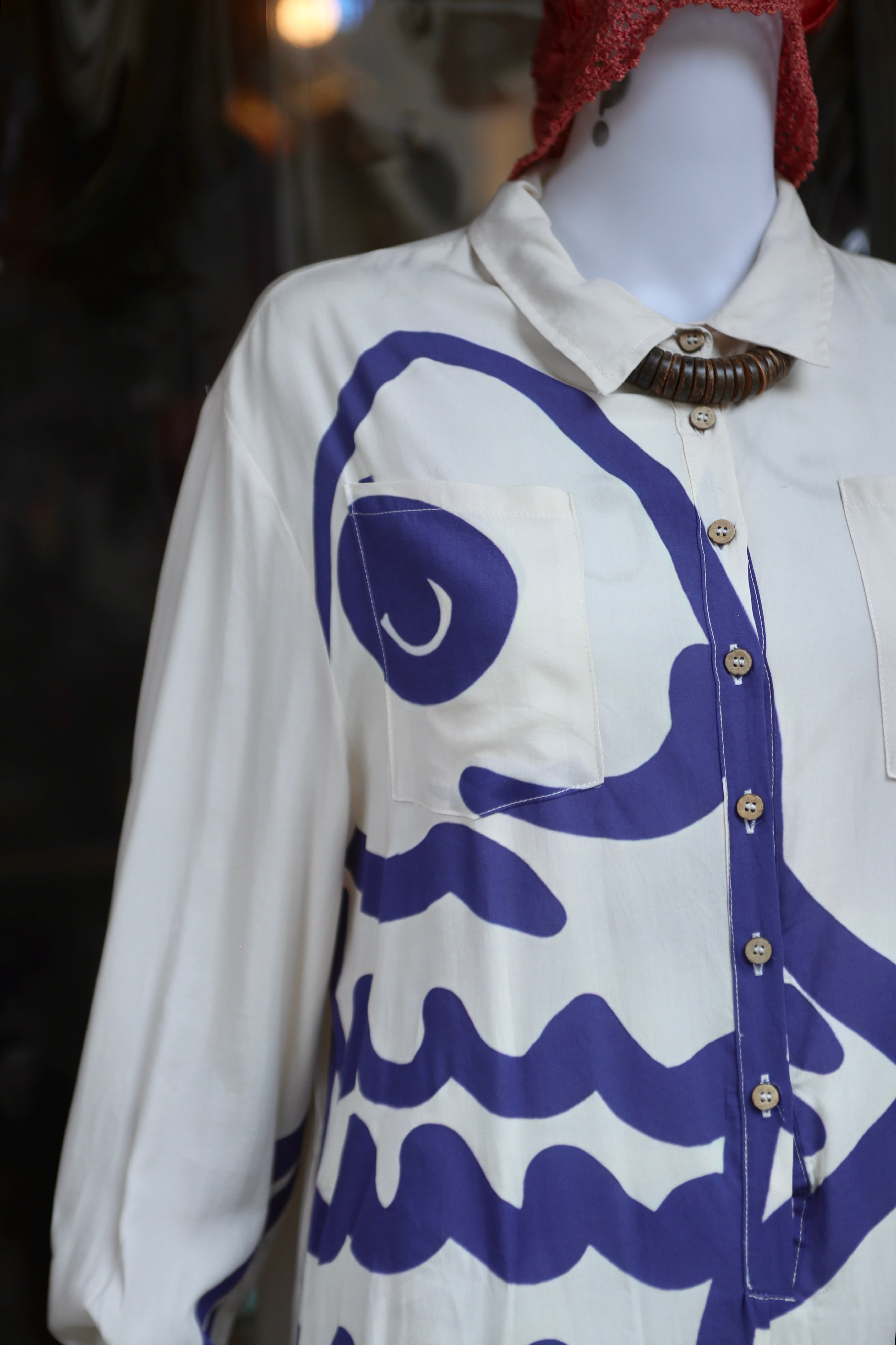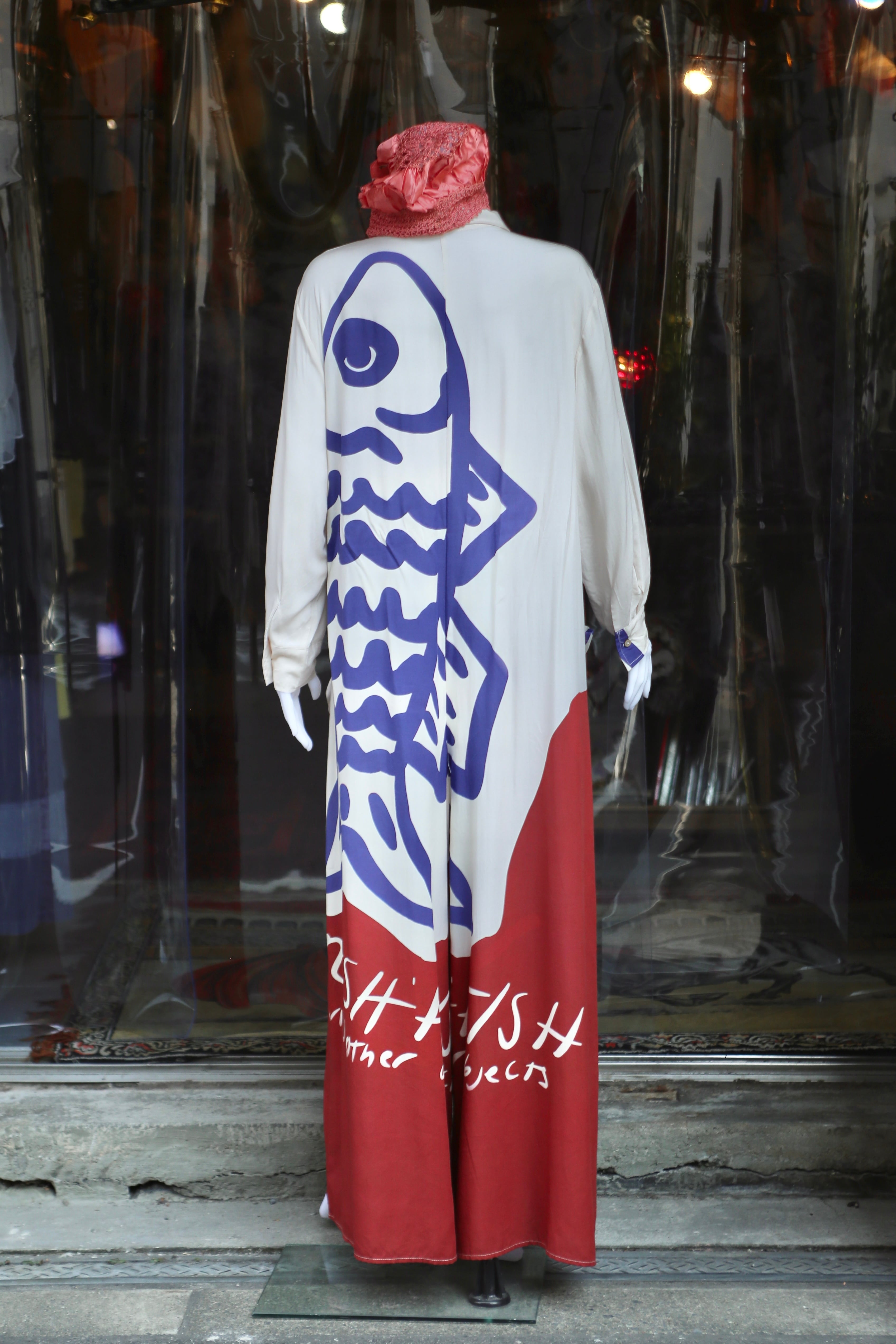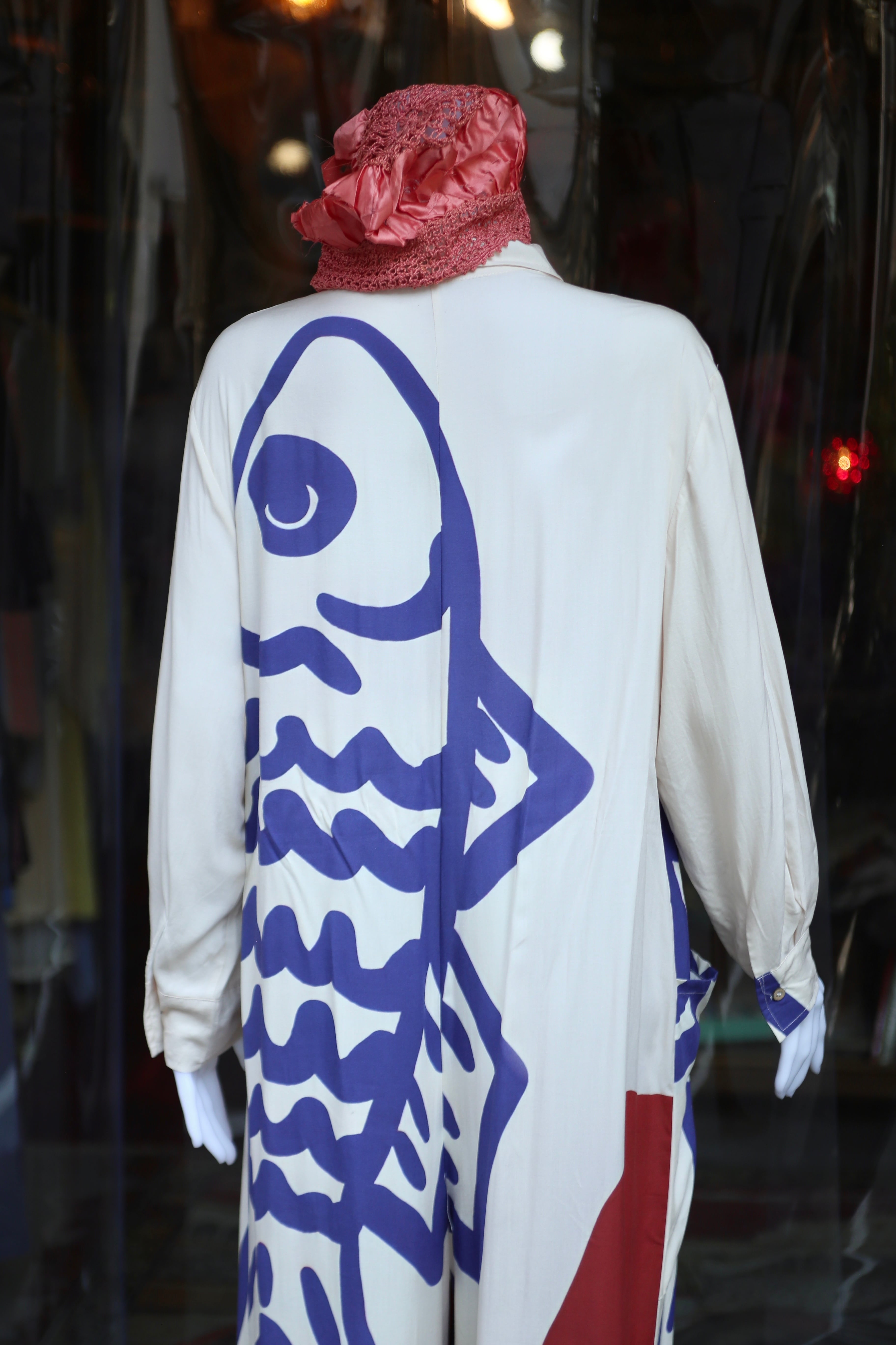 魚 Fish オールインワン オーバーオール つなぎ シャツ ハーフボタン 古着 vintage ビンテージ ヴィンテージ