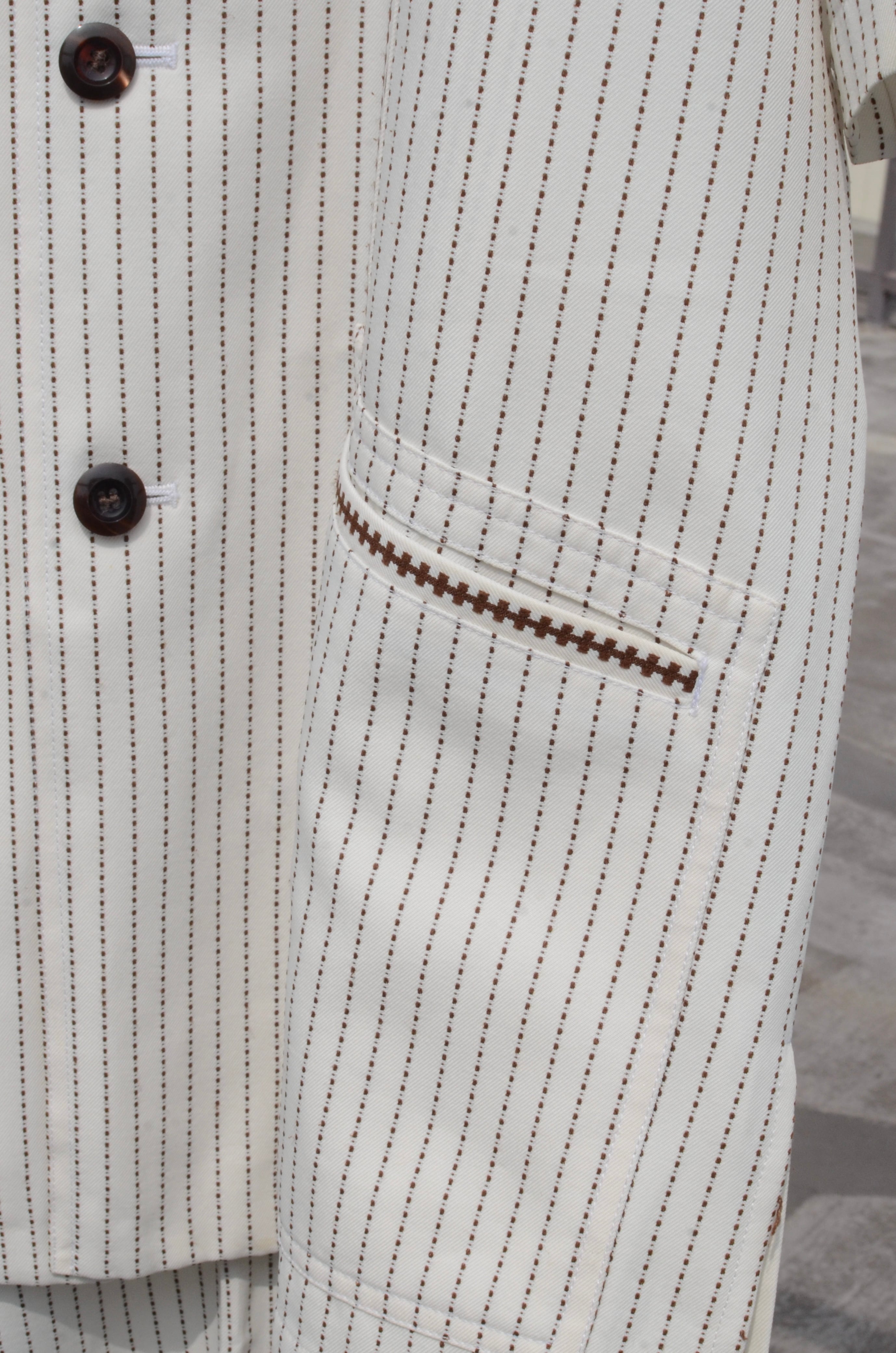 コンディション:C ※トップボタン上から2番目横に汚れ、パンツ左ポケットボタン欠損。