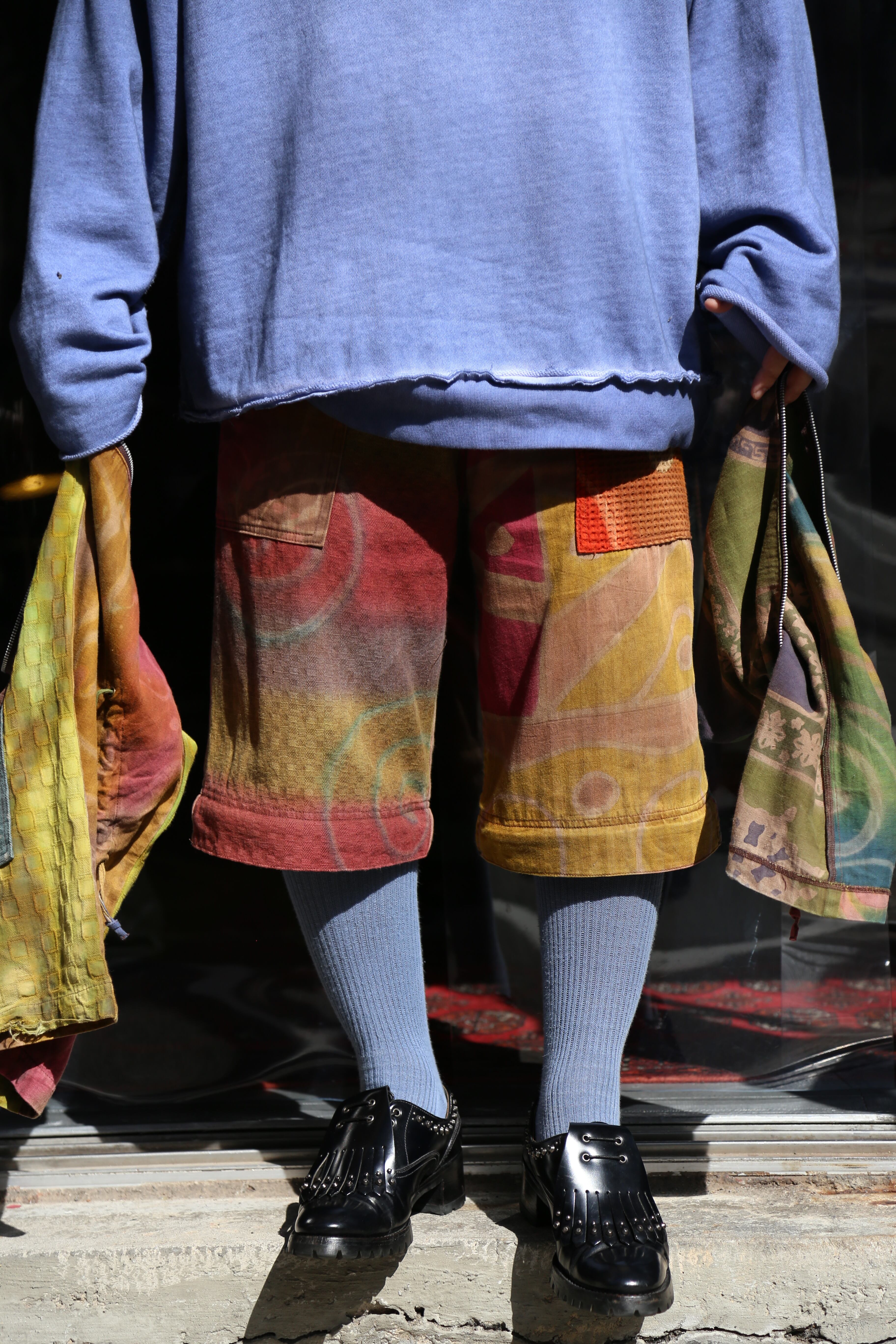 shorts ショーツ ハーフパンツ ロング ジッパー クレイジーパターン エスニック タイダイ ヴィンテージ ビンテージ vintage 古着