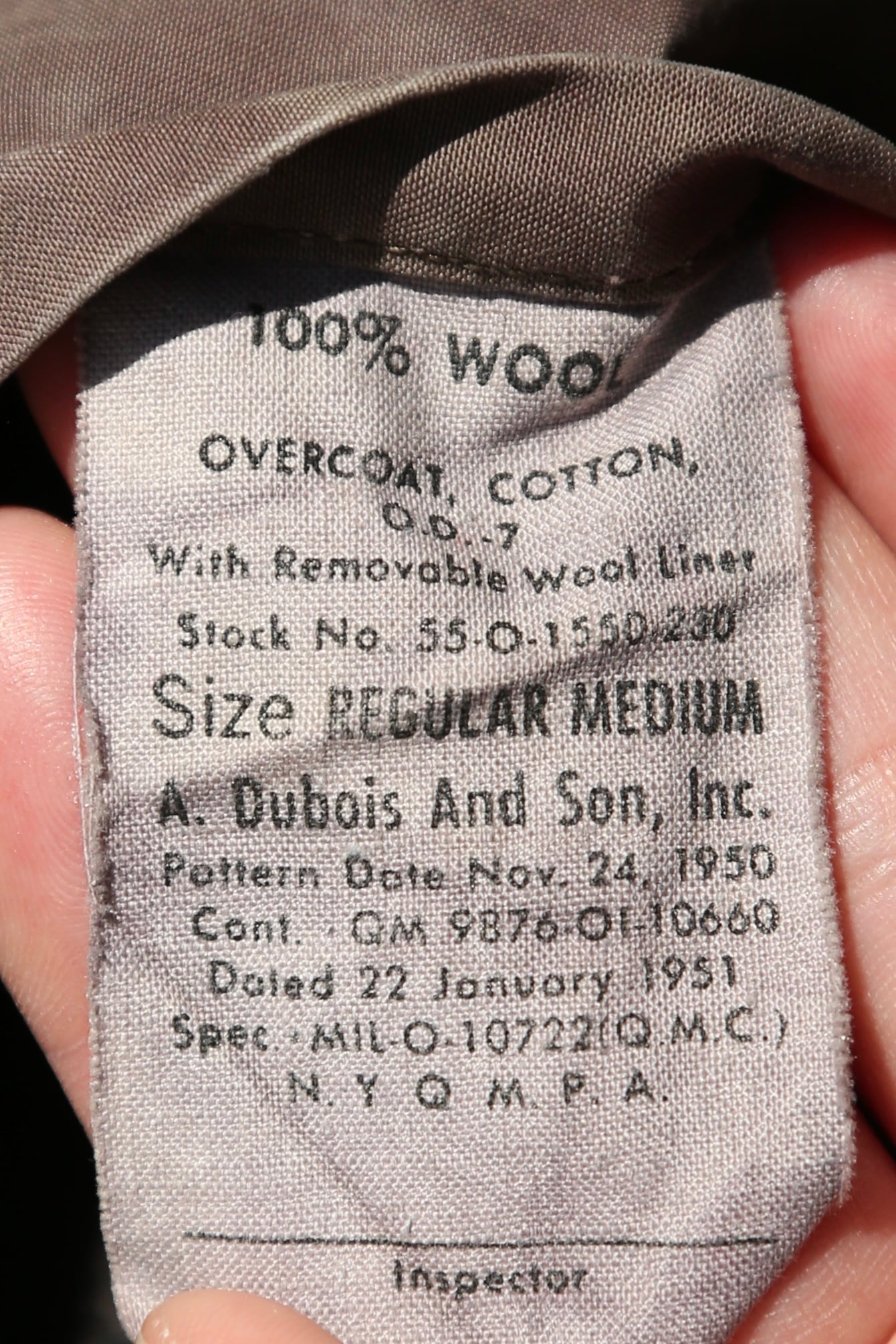 1950年製 50s 米軍 アメリカ軍 military ミリタリー ウール ライナーコート リメイク 後染め フェード 襤褸 ヴィンテージ ビンテージ vintage 1st STANDARDタグ付き Spec•MIL-O-10722(Q.M.C.) N.Y.Q.M.P.A. Inspector