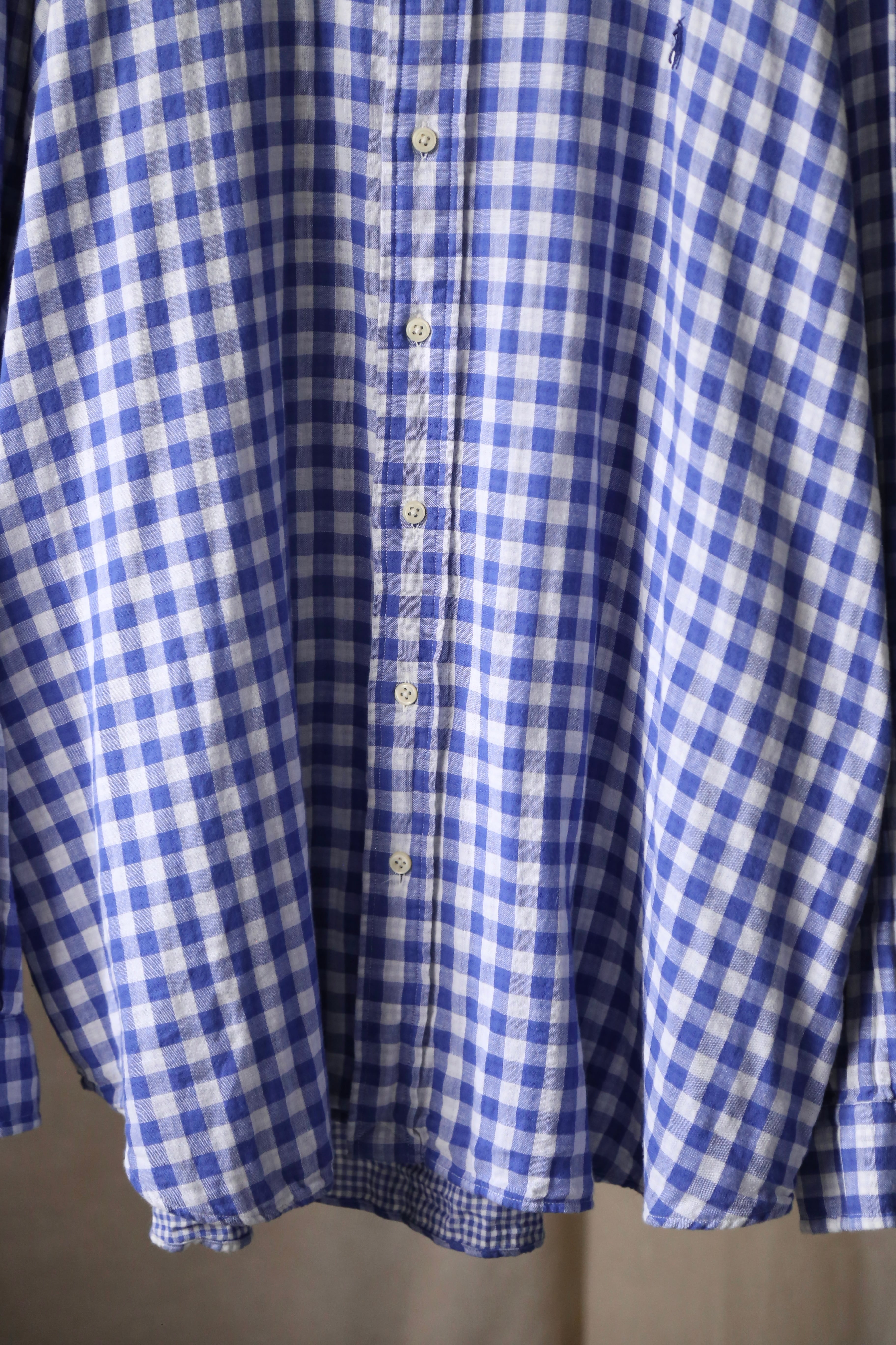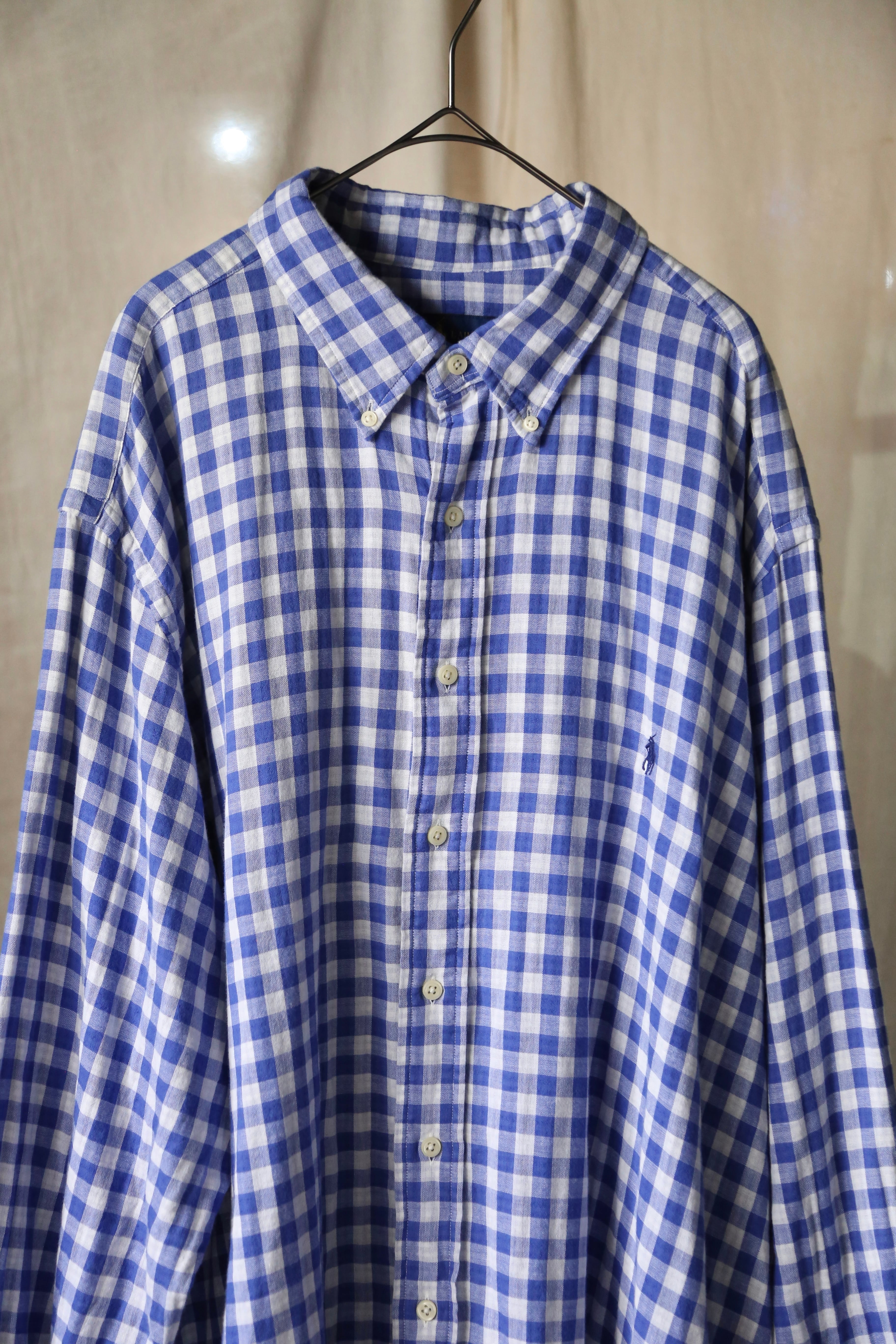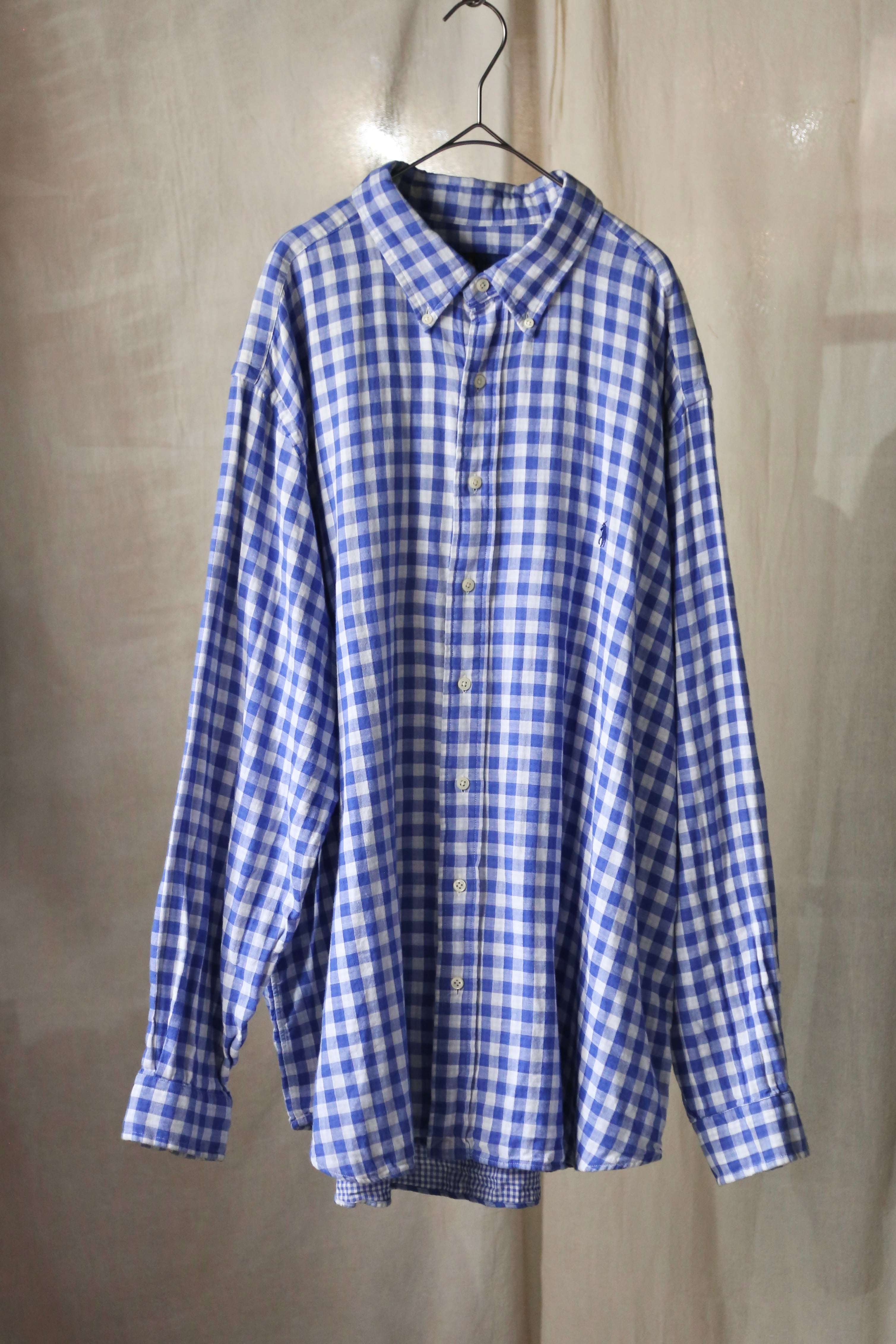 ラルフローレン ギンガムチェック 長袖 シャツ ブルー 青 古着 オーバーサイズ チェック ポニー