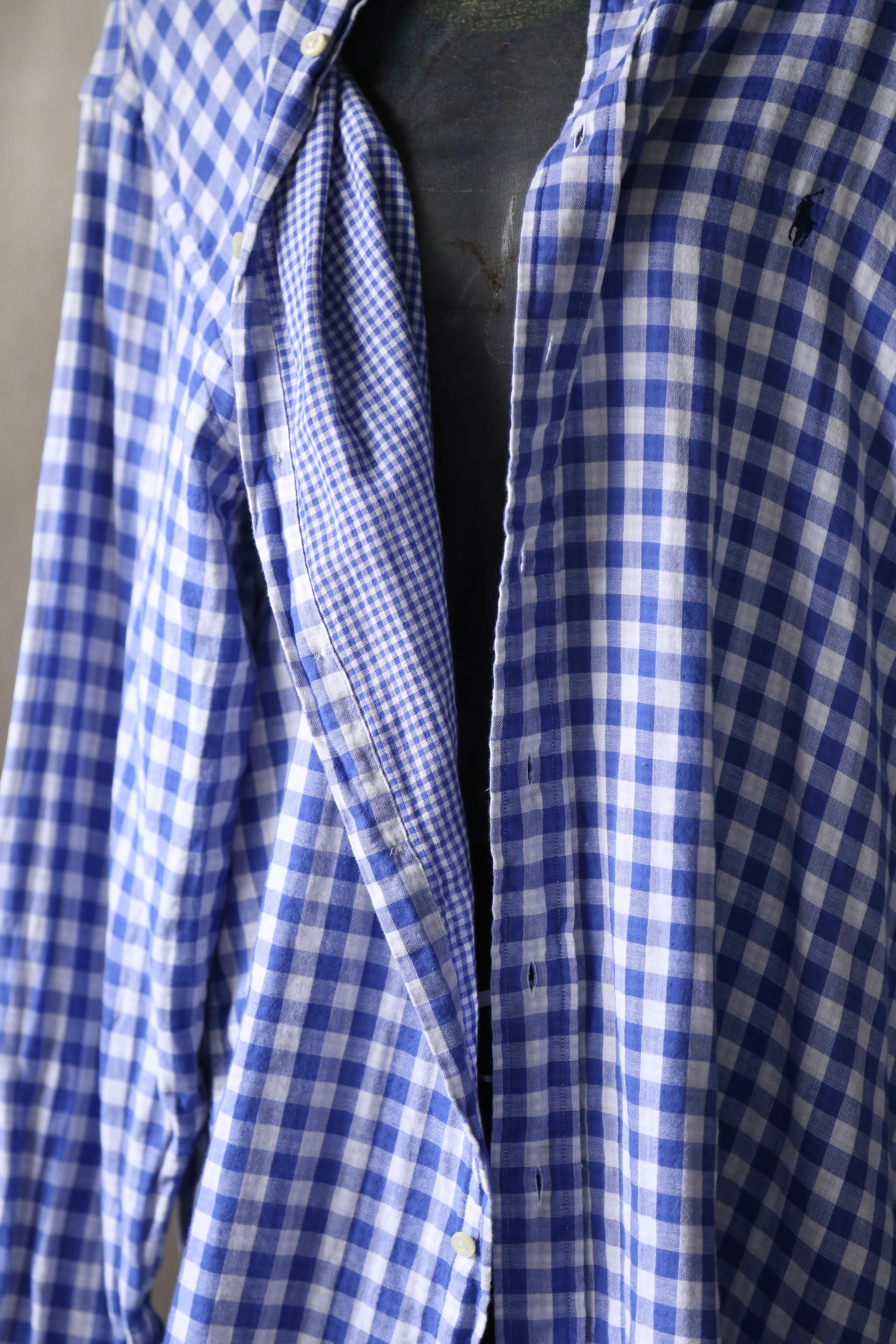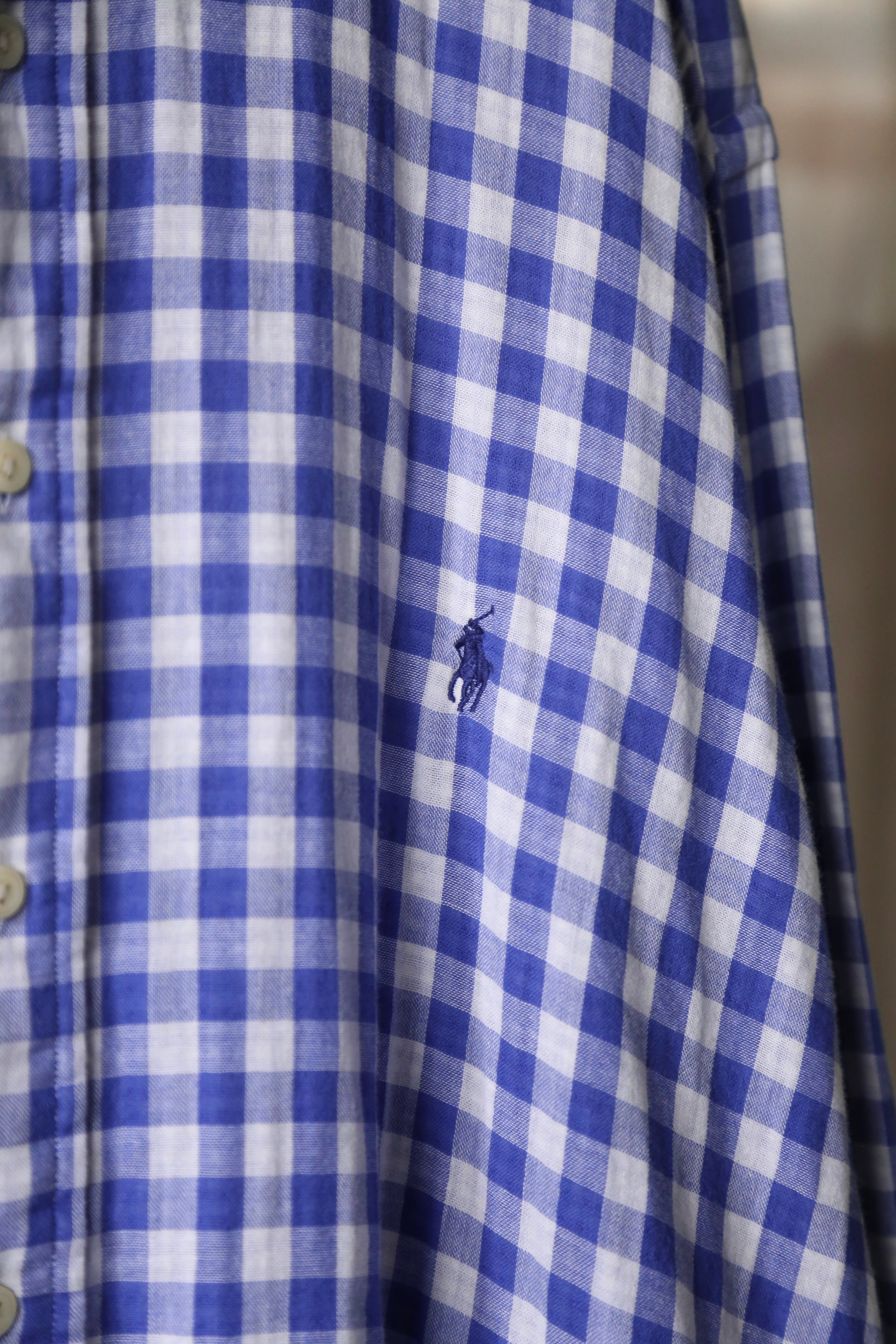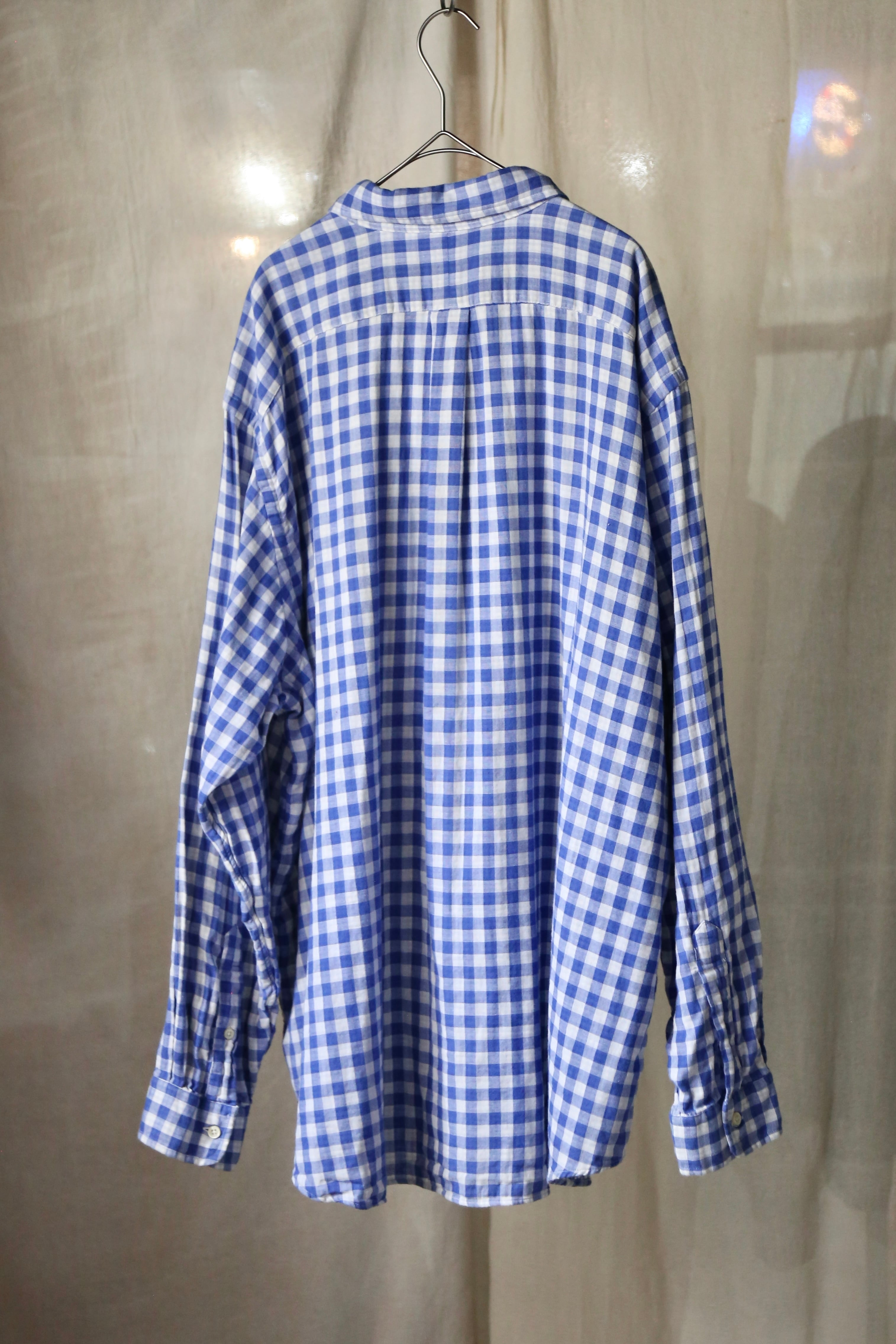 ラルフローレン ギンガムチェック 長袖 シャツ ブルー 青 古着 オーバーサイズ チェック ポニー