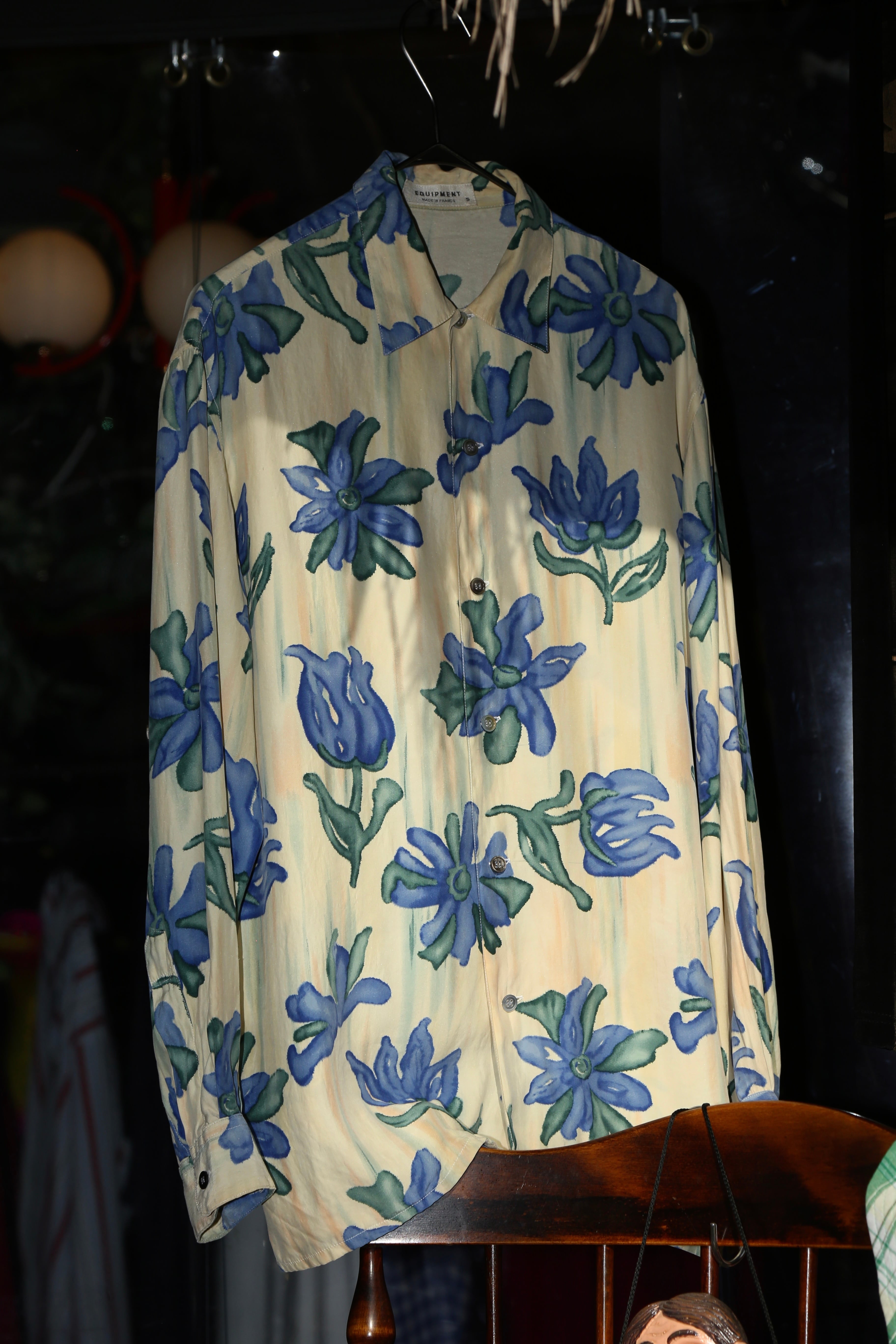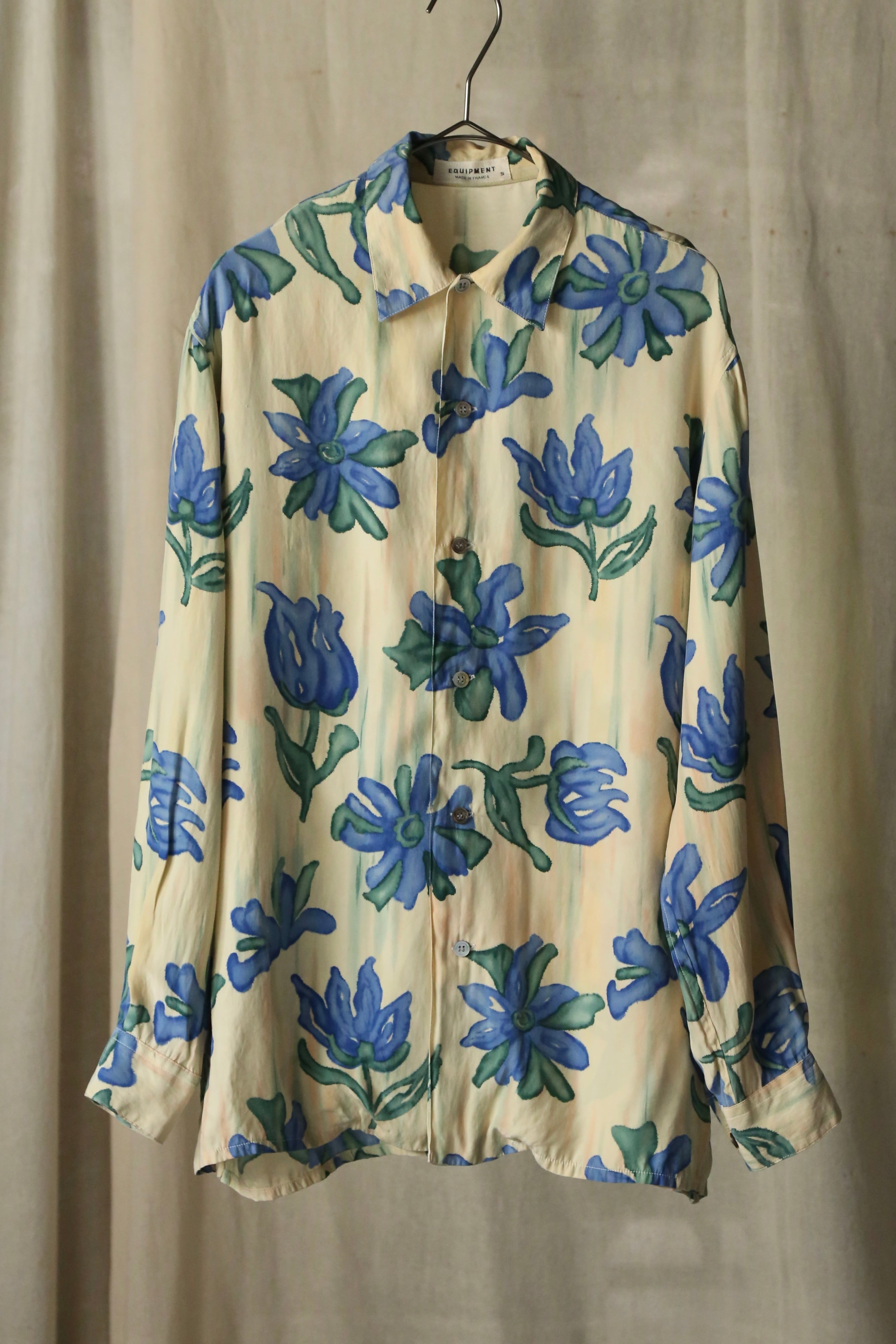 エキプモン 長袖シャツ シルクシャツ メンズ バターイエロー フラワー フローラル 古着