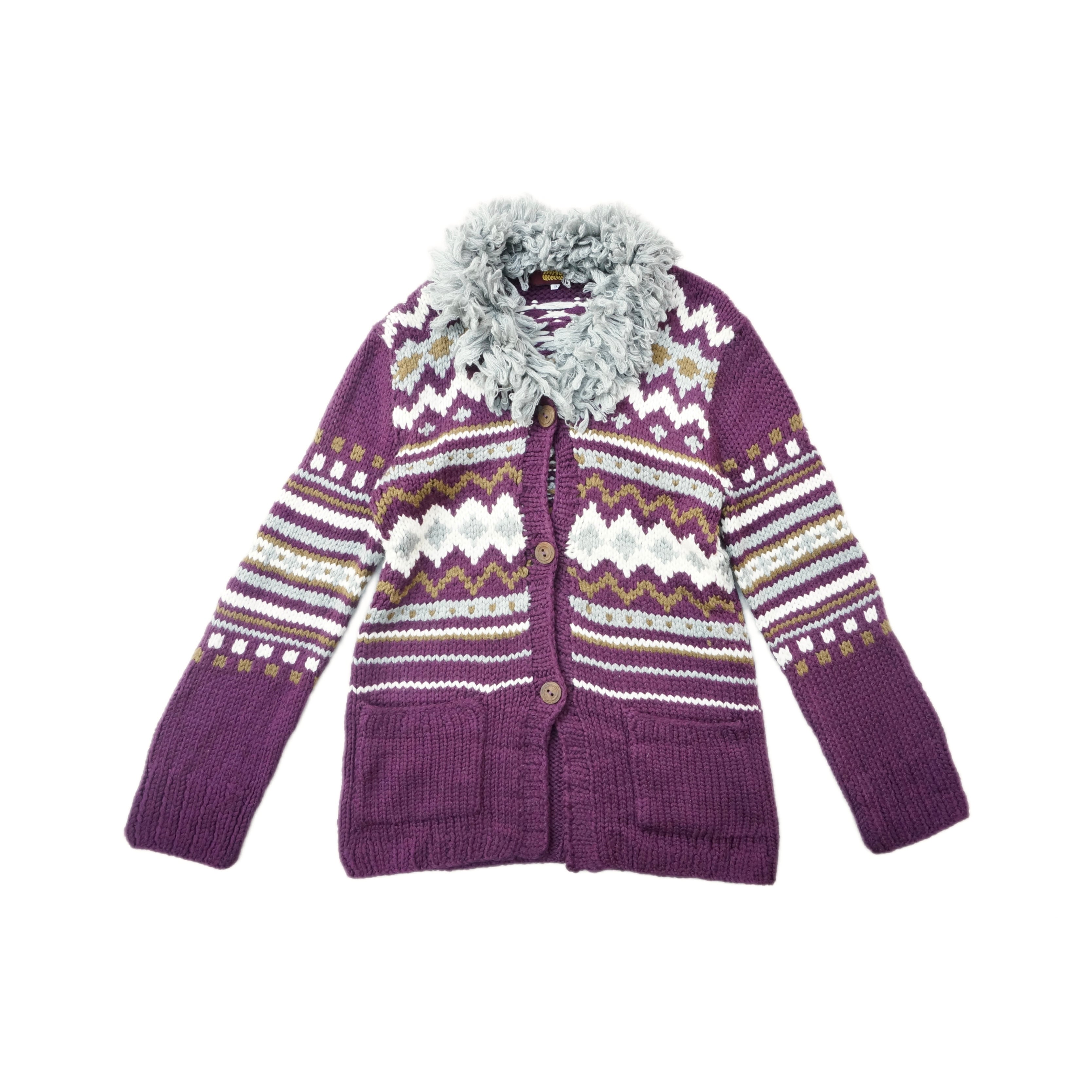 mash mania ループフリンジ襟 ニットカーディガン