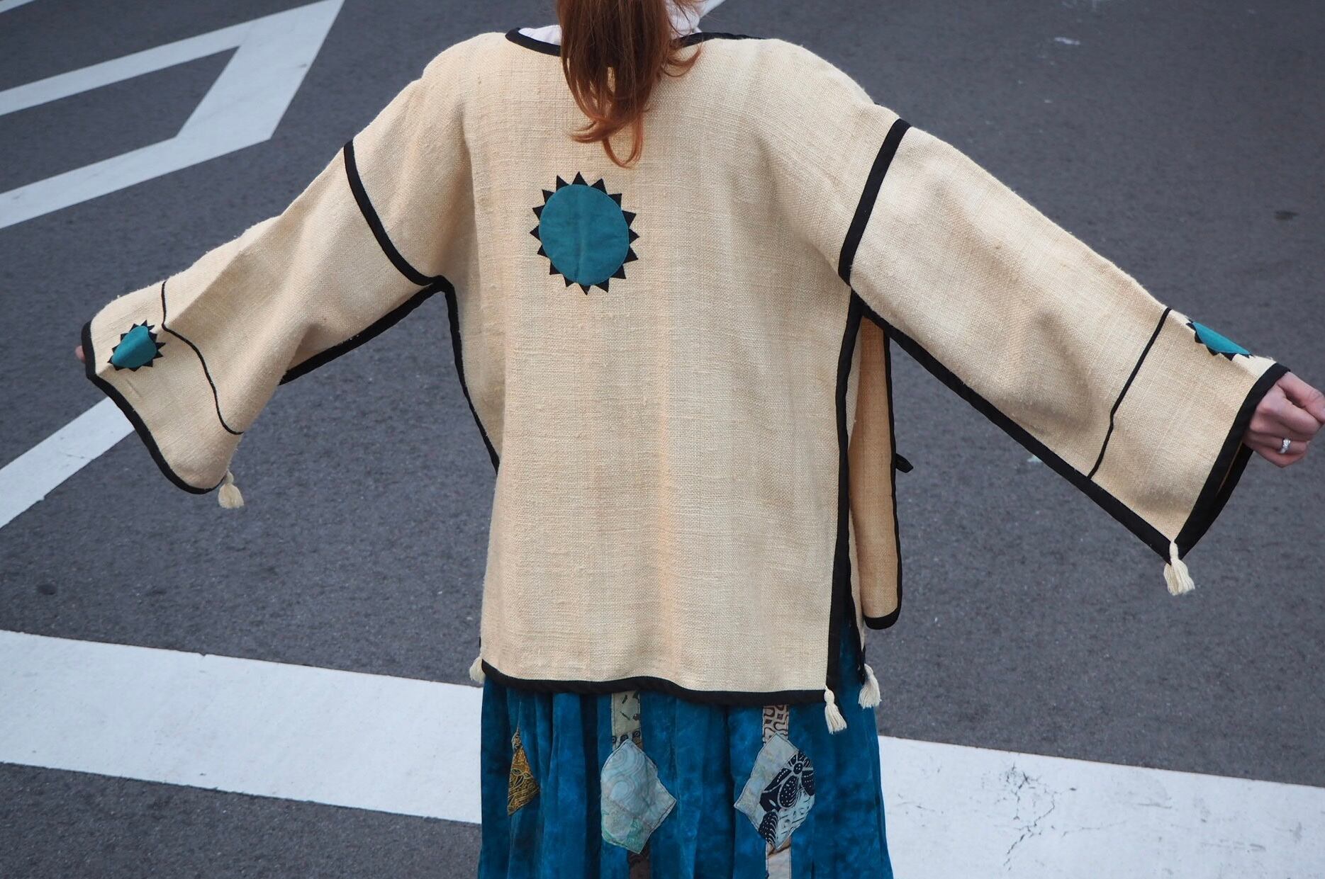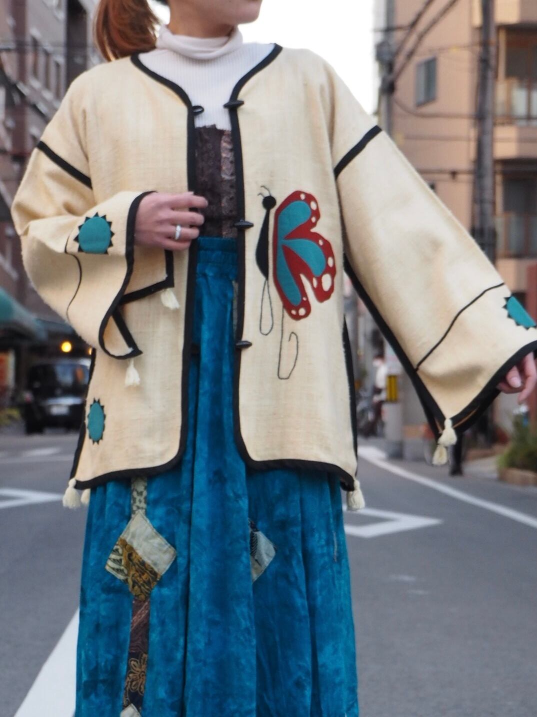 蝶々 フリンジ ガウンジャケット パイピングコート
