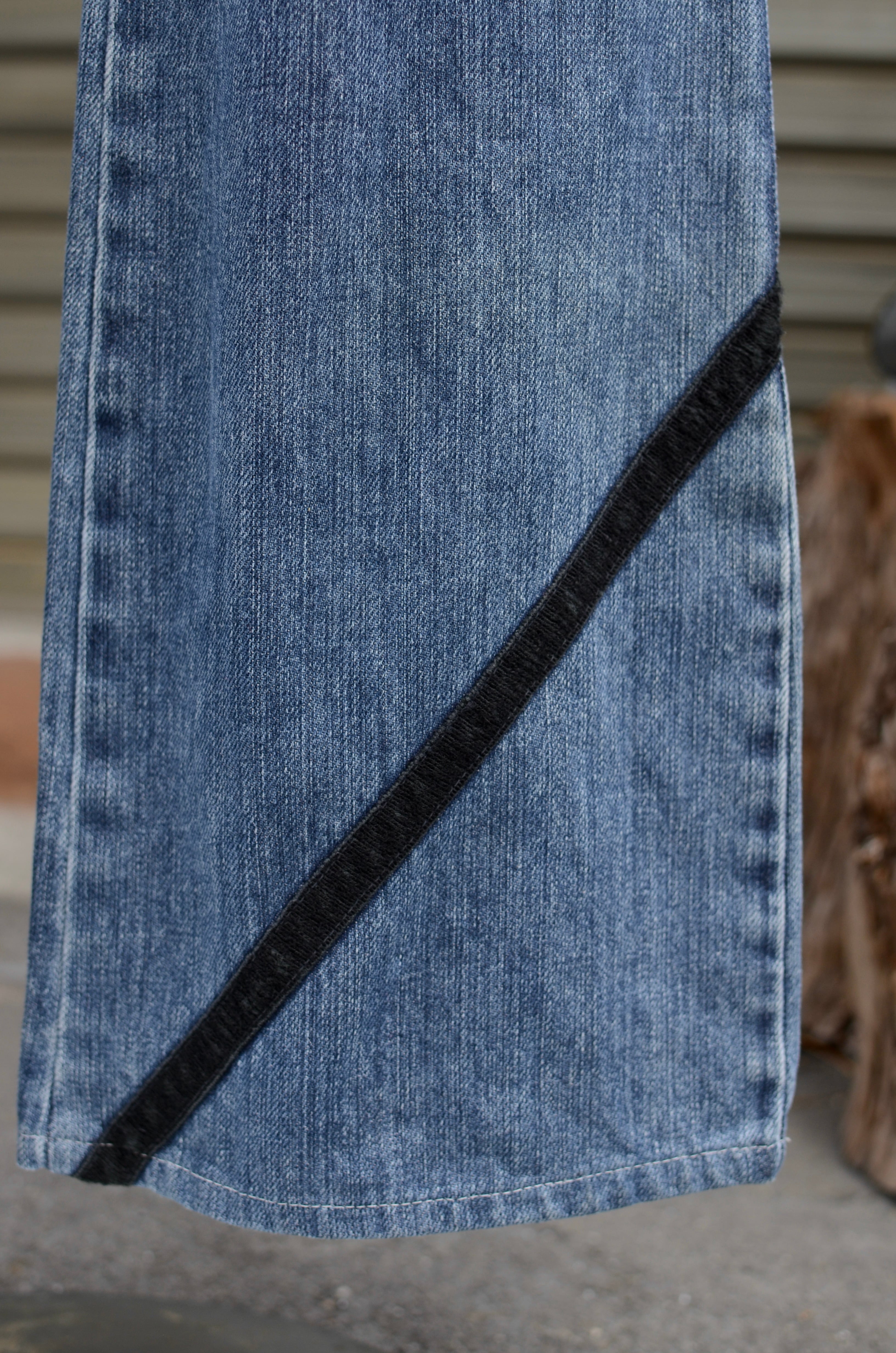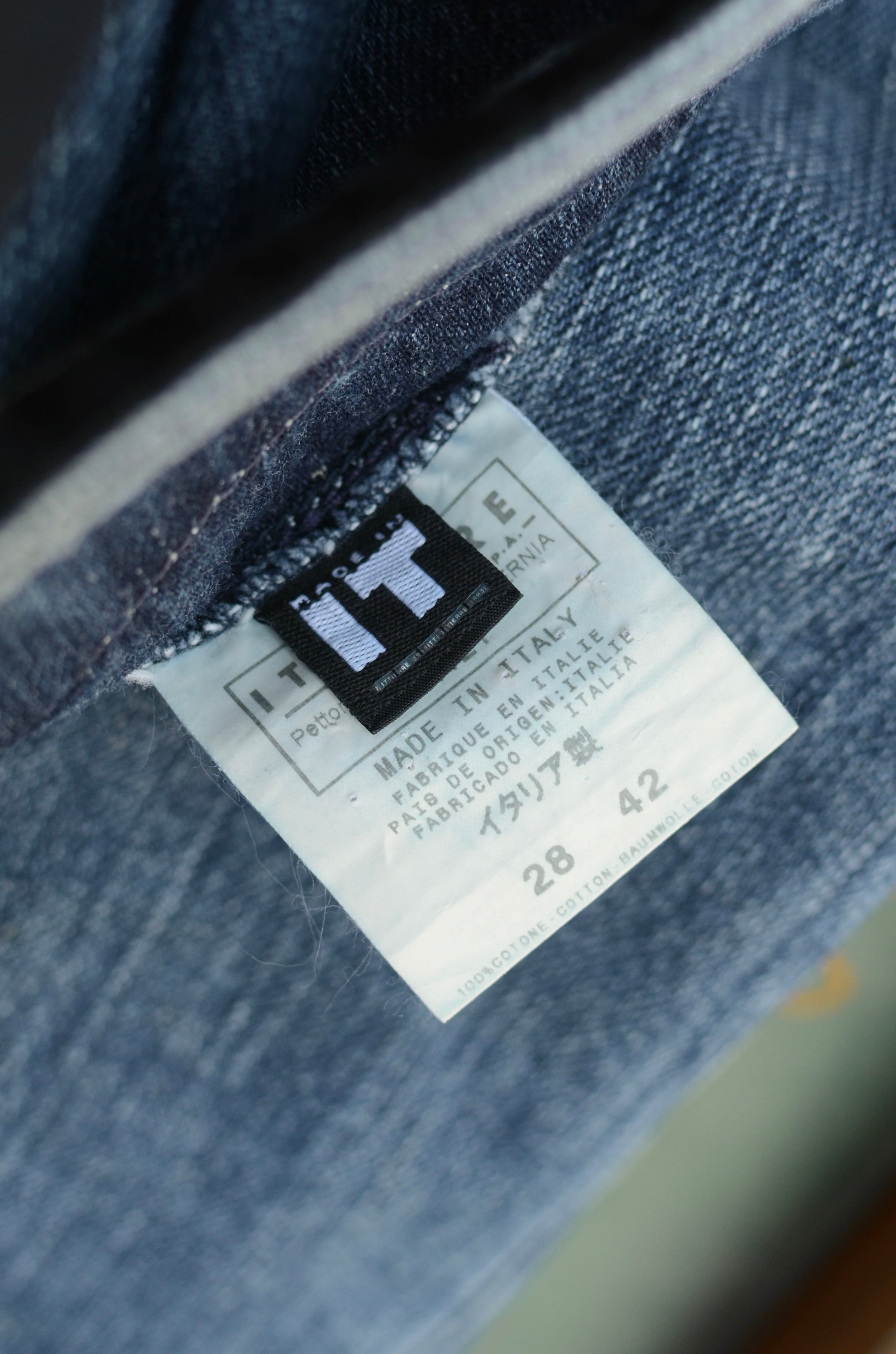 写真は太陽光で見た時の色味に合わせております。室内などの暗い所で見ると紫がかったブルーデニムです。